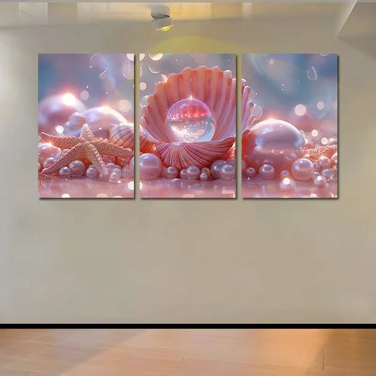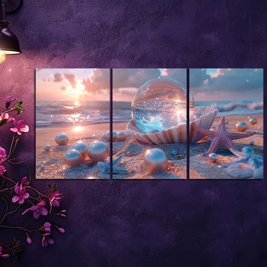 3pcs Opalescent Crystal Ball & Seashell Design Wall Art Set Canvas Framed 60x90cm - High Quality Print 100% Australian Made Wall Canvas Ready to Hang