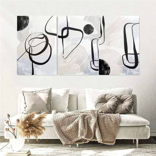3pcs Neutral Abstract Grey and Black Modern Wall Art Set Canvas Framed 60x90cm - High Quality Print 100% Australian Made Wall Canvas Ready to Hang