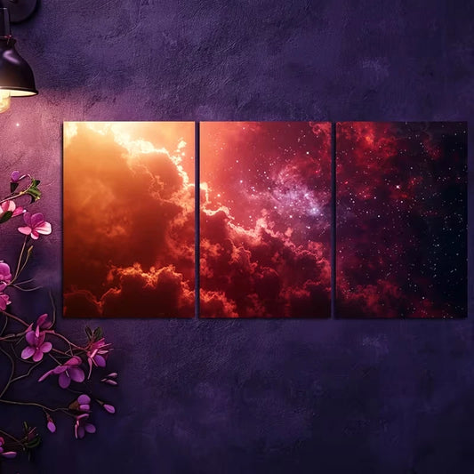 3pcs Nebula with Red and Pink Glowing Gas Clouds Wall Art Set Canvas Framed 60x90cm - High Quality Print 100% Australian Made Wall Canvas Ready to Hang