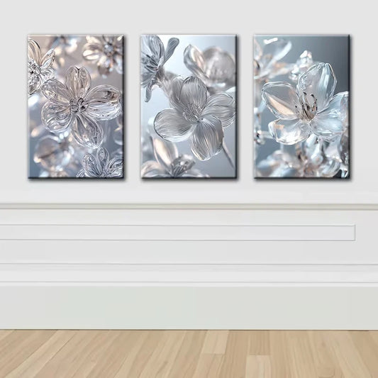 3pcs Clear glass crystal flowers Wall Art Set Canvas Framed 60x90cm - High Quality Print 100% Australian Made Wall Canvas Ready to Hang