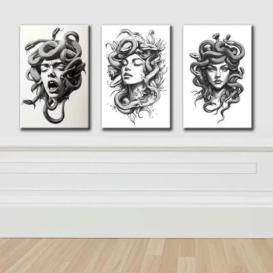 3pcs Medusa Head Mythical Gorgon Portraits Wall Art Set Canvas Framed 60x90cm - High Quality Print 100% Australian Made Wall Canvas Ready to Hang