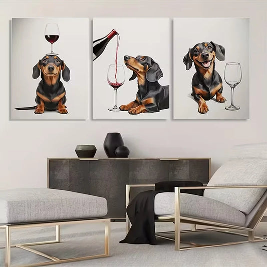 3pcs Sausage Dog Wine Series Wall Art Set Canvas Framed 60x90cm - High Quality Print 100% Australian Made Wall Canvas Ready to Hang