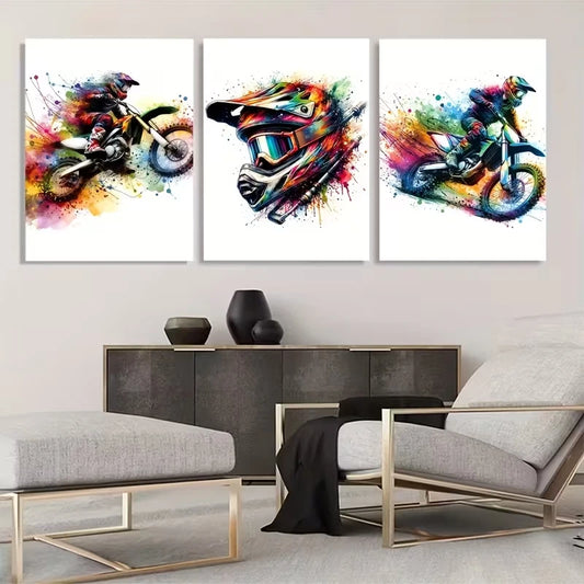 3pcs Watercolor Motocross Decor Wall Art Set Canvas Framed 60x90cm - High Quality Print 100% Australian Made Wall Canvas Ready to Hang