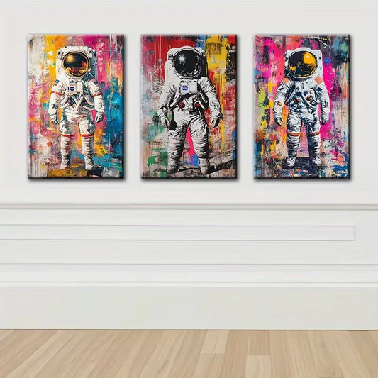 3pcs Graffiti astronaut Illustration Wall Art Set Canvas Framed 60x90cm - High Quality Print 100% Australian Made Wall Canvas Ready to Hang