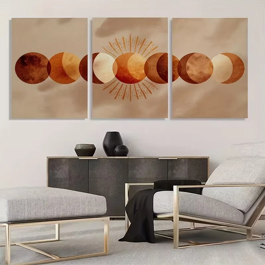 3pcs Bohemian Moon Phase Triptych Mural Wall Art Set Canvas Framed 60x90cm - High Quality Print 100% Australian Made Wall Canvas Ready to Hang