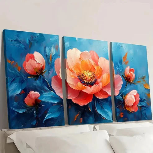 3pcs Flower Painting Abstract Flower AE Wall Art Set Canvas Unframed - High Quality Print 100% Australian Made Wall Canvas