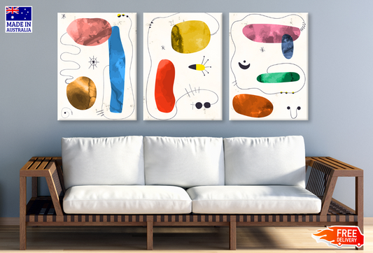 3 Set of Abstract Shapes Painting High Quality Print 100% Australian Made Wall Canvas Ready to Hang