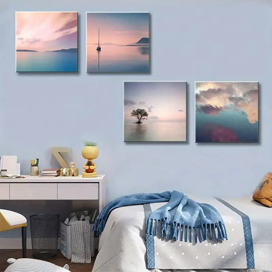 4pcs Romantic Sunset Beach Canvas Wall Art Canvas Framed