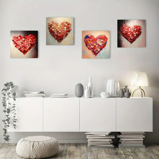 4pcs Pink Heart Valentine's Day Theme Wall Art Canvas Framed