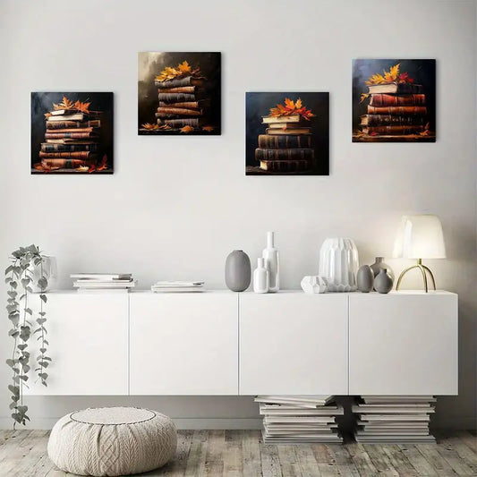 4pcs Autumn Book Elegant Modern Decorative ABD Wall Art Canvas Framed