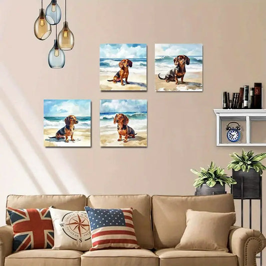 4pcs Charming Dachshund& Ocean Wall Art Canvas Framed