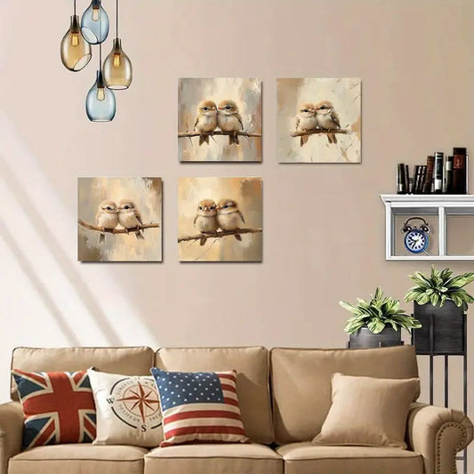 4pcs Birds on Branch Elegant Modern Decorative Wall Art Canvas Framed