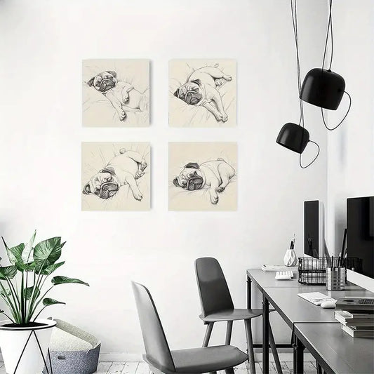 4pcs Vintage Abstract Decor Rustic Pug Wall Art Canvas Framed