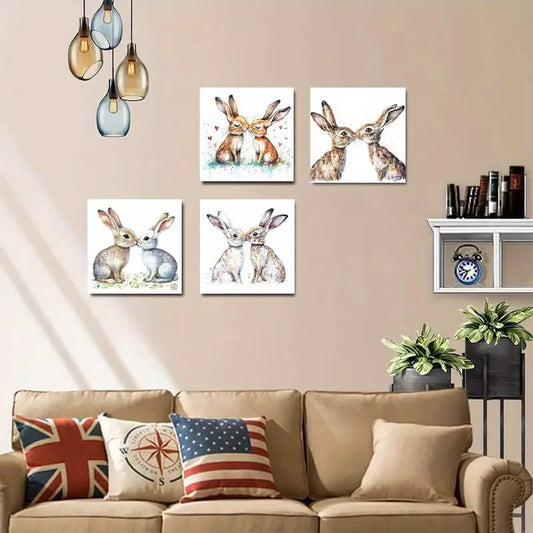 4pcs Kssing hares picture Art Deco Classic Wall Art Canvas Framed