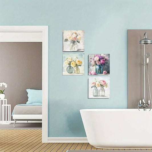 4pcs Different Flower Arrangements Wall Art Canvas Framed