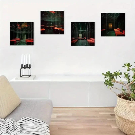 4pcs Chic Mirror Hallway Wall Art Canvas Framed