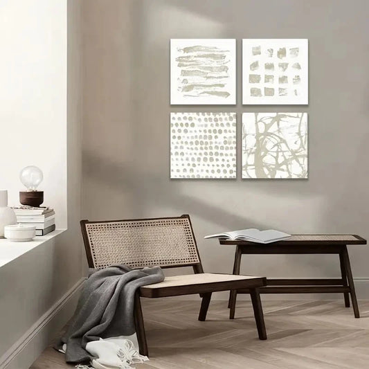 4pcs Beige And White Watercolor Gallery Wall Art Canvas Framed