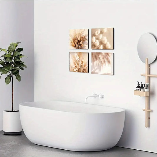 4pcs Modern Minimalist Floral & Butterfly Design Wall Art Canvas Framed