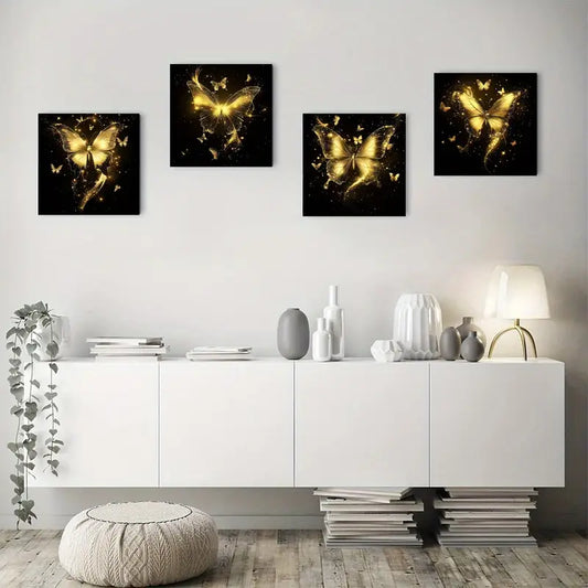 4pcs Golden Butterfly With Sparkling Golden Wall Art Canvas Framed