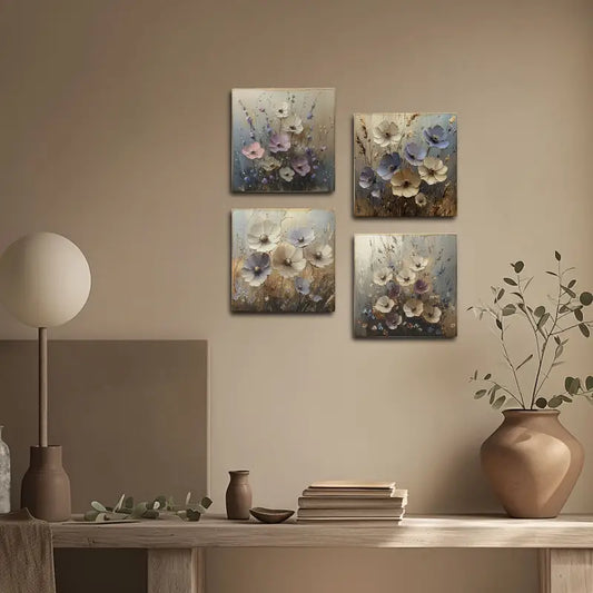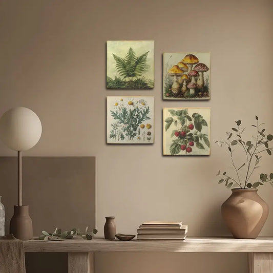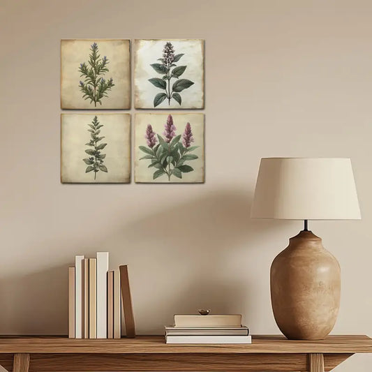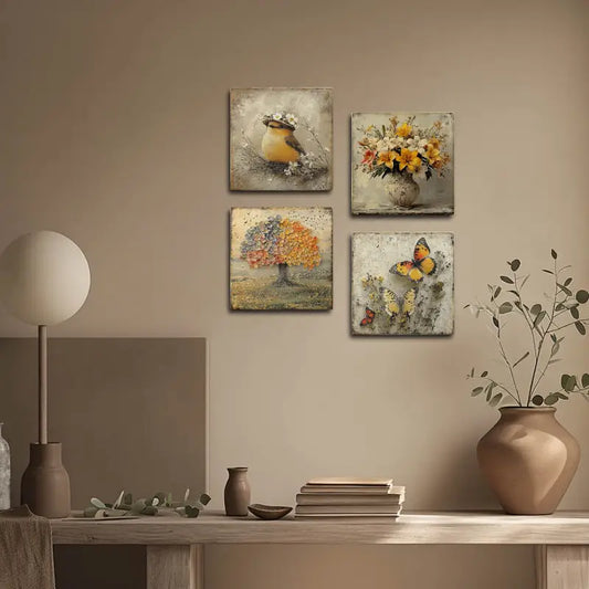 4pcs Vintage Floral & Nature-Inspired Decor Wall Art Canvas Framed