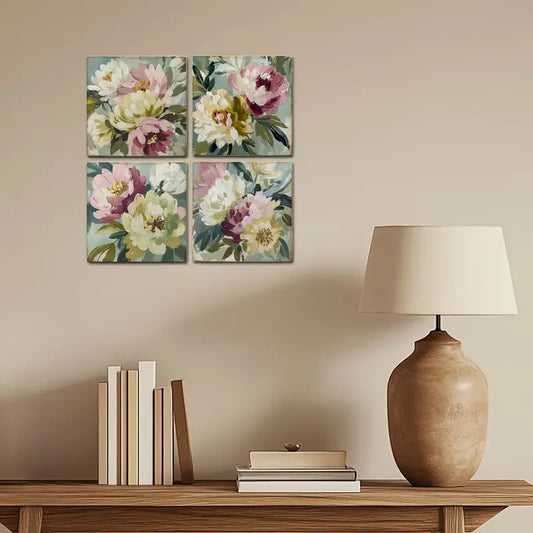 4pcs Flower Bouquet Wall Art Canvas Framed