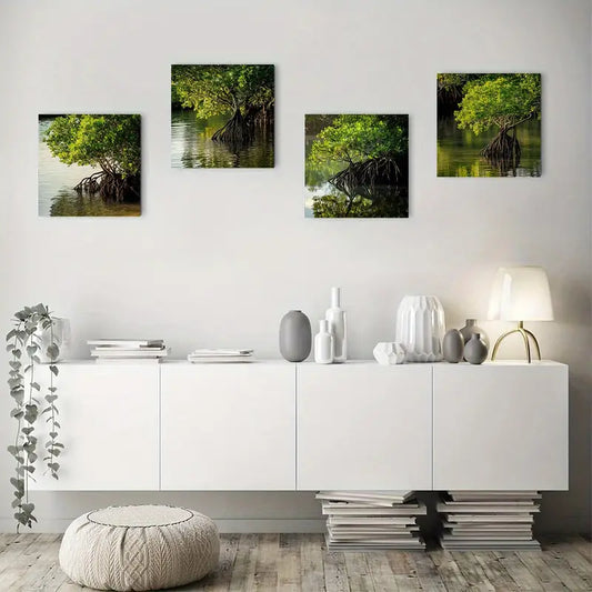 4pcs Mangroves Growing In Swamp Wall Art Canvas Framed