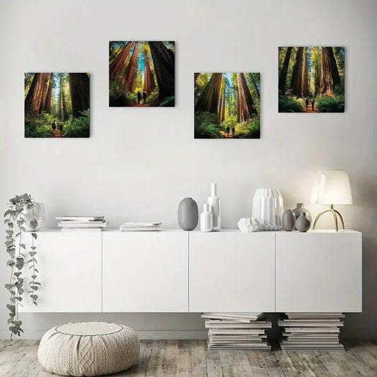 4pcs Nature Scene With Sunlight & Hikers Wall Art Canvas Framed