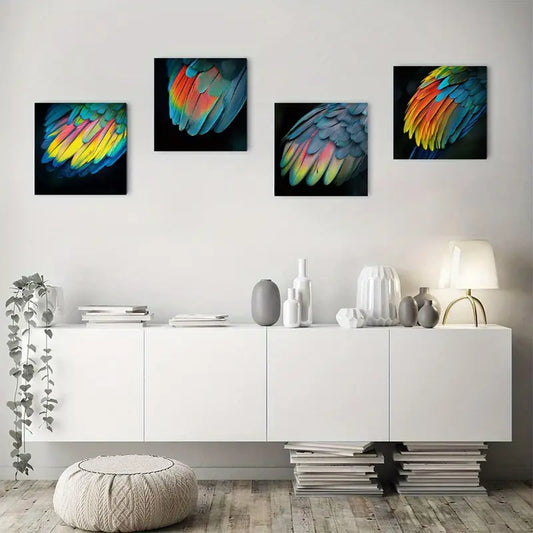 4pcs Beautiful Animal Feather Wall Art Canvas Framed
