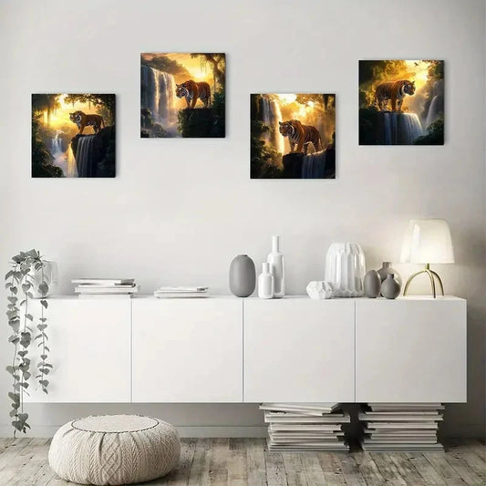 4pcs American Buffalo, Mountain Landscapes Wall Art Canvas Framed