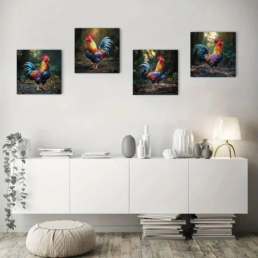 4pcs Vibrant King of RoosterWall Art Canvas Framed