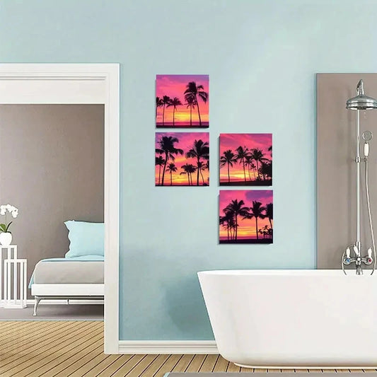 4pcsSummer Sunset with Palm TreesWall Art Canvas Framed