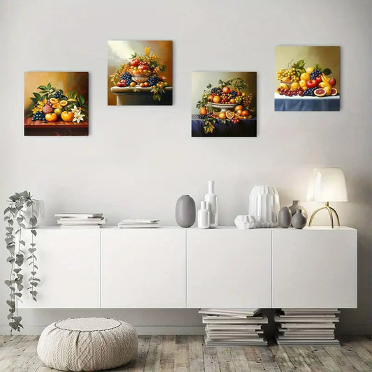 4pcs Fruit Artwork Vintage Wall Art Canvas Framed