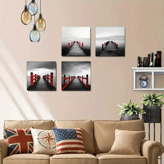 4pcs Country Road Elegant Modern er Wall Art Canvas Framed