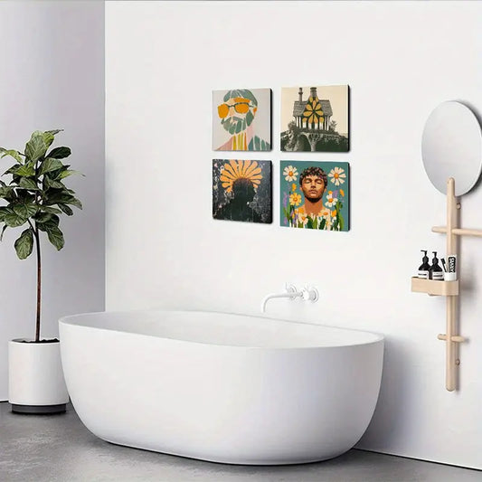 4pcs Retro Sunflower in Neutral Boho Style d Wall Art Canvas Framed