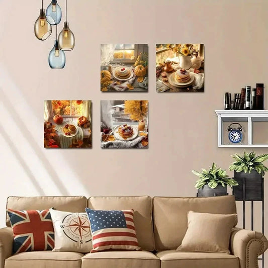 4pcs Autumn Fall Pancake Pumpkin Wall Art Canvas Framed