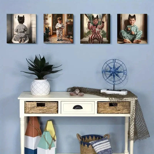 4pcsModern Decorative Clown CatWall Art Canvas Framed