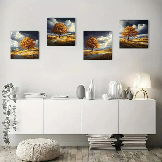 4pcsAutumn Leaves Tree ValleyWall Art Canvas Framed