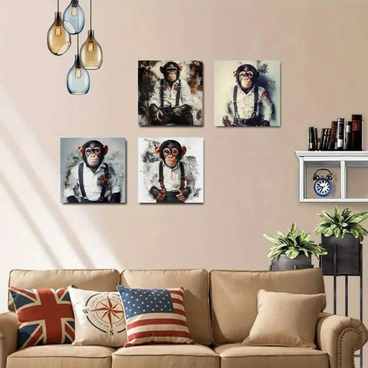4pcs Chic Black Monkey Wall Art Canvas Framed