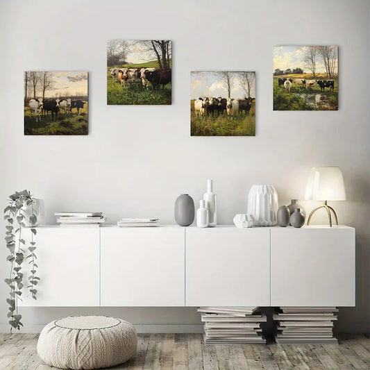 4pcs Cows On Pastur Elegant Modern Wall Art Canvas Framed