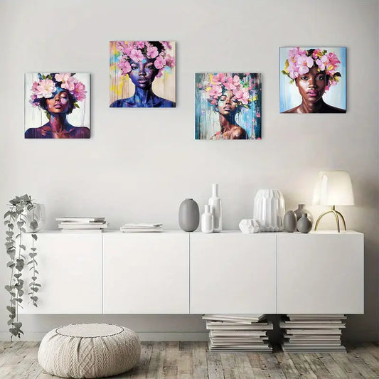 4pcsElegant FloralWall Art Canvas Framed