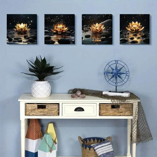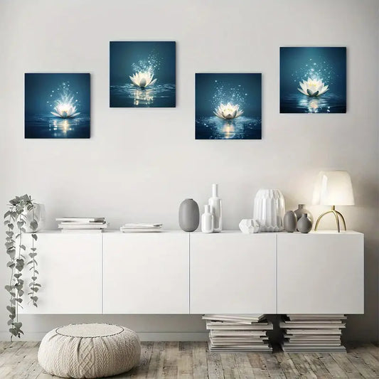 4pcs Lotus Flower Design Wall Art Canvas Framed