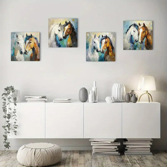 4pcs Fine Horse Room Decor Wall Art Canvas Framed