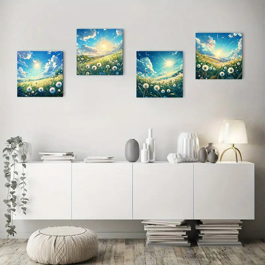 4pcs Dandelion Sunrise Landscape Wall Art Canvas Framed