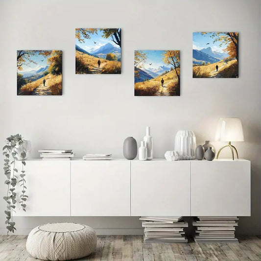 4pcs Chic Scenic Photography Wall Art Canvas Framed