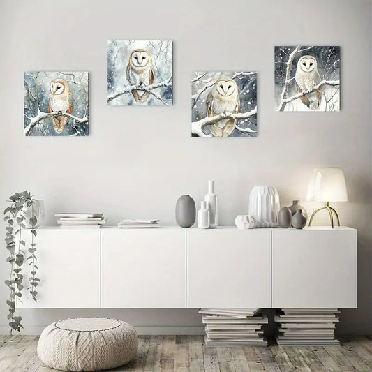 4pcs Barn Owl Snow Wall Art Canvas Framed