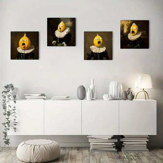 4pcs Whimsical Lemon Characters In Renaissance Wall Art Canvas Framed
