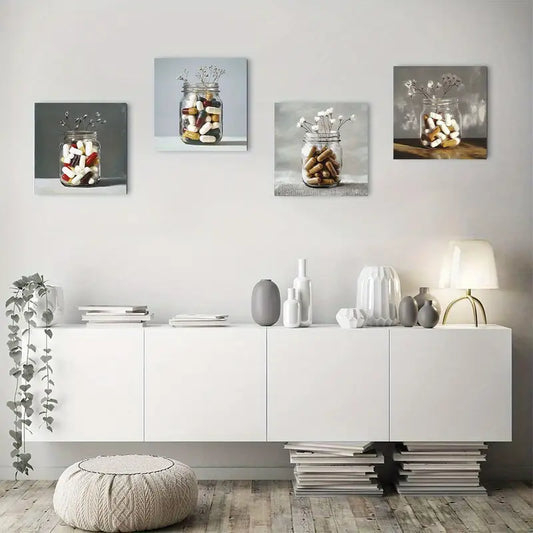 4pcs Vibrant Bouquet Themed Home Decor Wall Art Canvas Framed