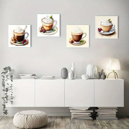 4pcs Coffee raspberry cream cookies Wall Art Canvas Framed