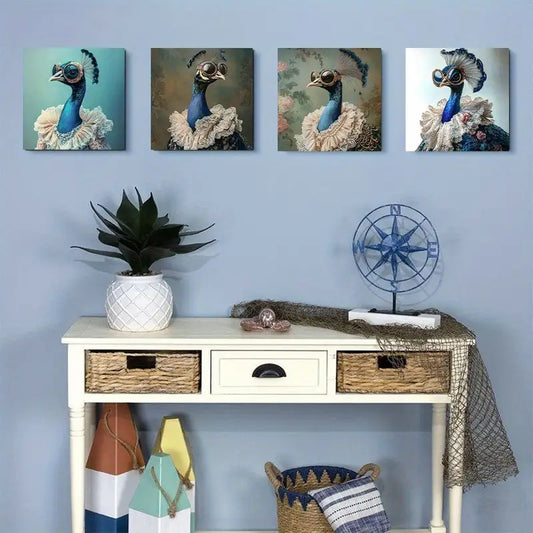 4pcs Lace & Feathered Peacock Wall Art Canvas Framed