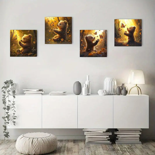 4pcs Painting Bear Butterfly Wall Art Canvas Framed